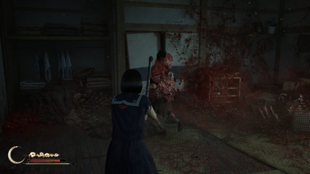 Apart from the tonally awkward story, Silent Hill f contains most of the gameplay elements you’d expect from prime entries in the series. You spend a lot of time exploring dilapidated, ruined buildings, searching for items of interest and dodging any monster that might come your way. There are equal parts combat and puzzle solving, though there are individual settings for each. For example, players who want less challenging combat can set the action to “story mode” difficulty, while those looking for solid brainteasers should choose the “hard” difficulty for puzzles.